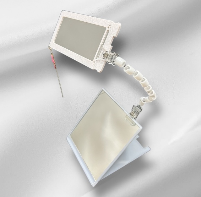 ●付け替えが簡単なクリップアームを使用しているので、お手持ちのミラーに付け替える事もできます(鏡の厚みは8mmまでクリップ可能です)